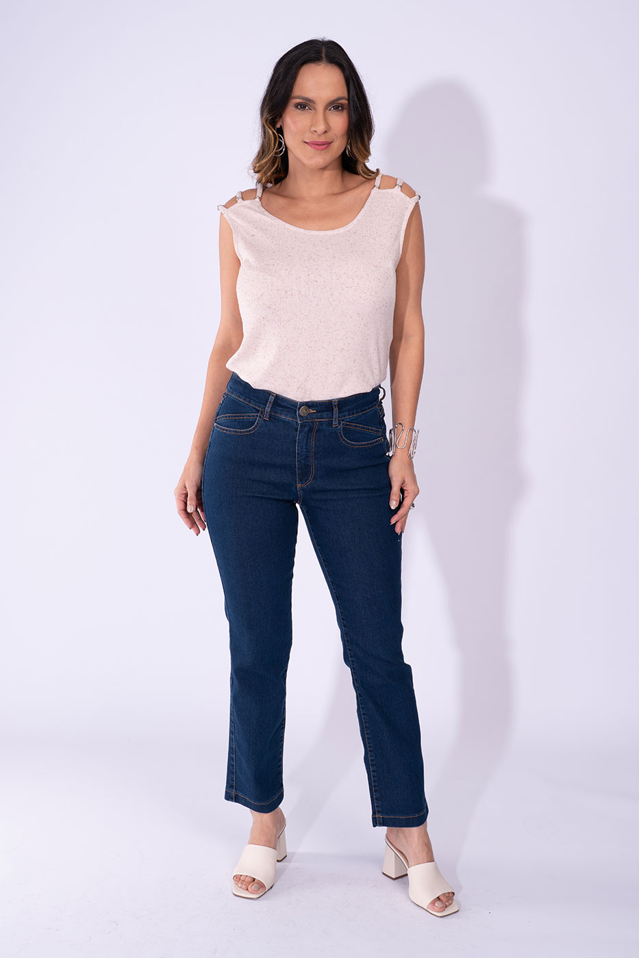 Cigarrete reta com pala pespontada que adiciona sofisticação ao design clássico, ideal para looks urbanos e alinhados.Comprimento de 75 cm e gancho 27 alongam a silhueta mantendo conforto e mobilidade.Blend com elastano garante boa recuperação e caimento ajustado sem restringir o movimento.Acabamento técnico e pespontos precisos valorizam a construção, enquanto reforços nos pontos de tensão aumentam a durabilidade da peça.