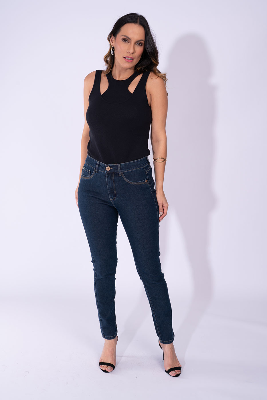 Cigarrete slim com corte ajustado que valoriza a silhueta, ideal para looks urbanos e alongados.Comprimento 76 cm e gancho 27 oferecem ajuste moderno, confortável e fácil de combinar.Confeccionada em denim com toque macio e leve elasticidade, garante mobilidade sem perder a forma.Acabamentos técnicos e pespontos discretos entregam visual refinado e resistência nas áreas de maior tensão.Peça versátil para combinar com tênis ou salto, com construção pensada em durabilidade e caimento.