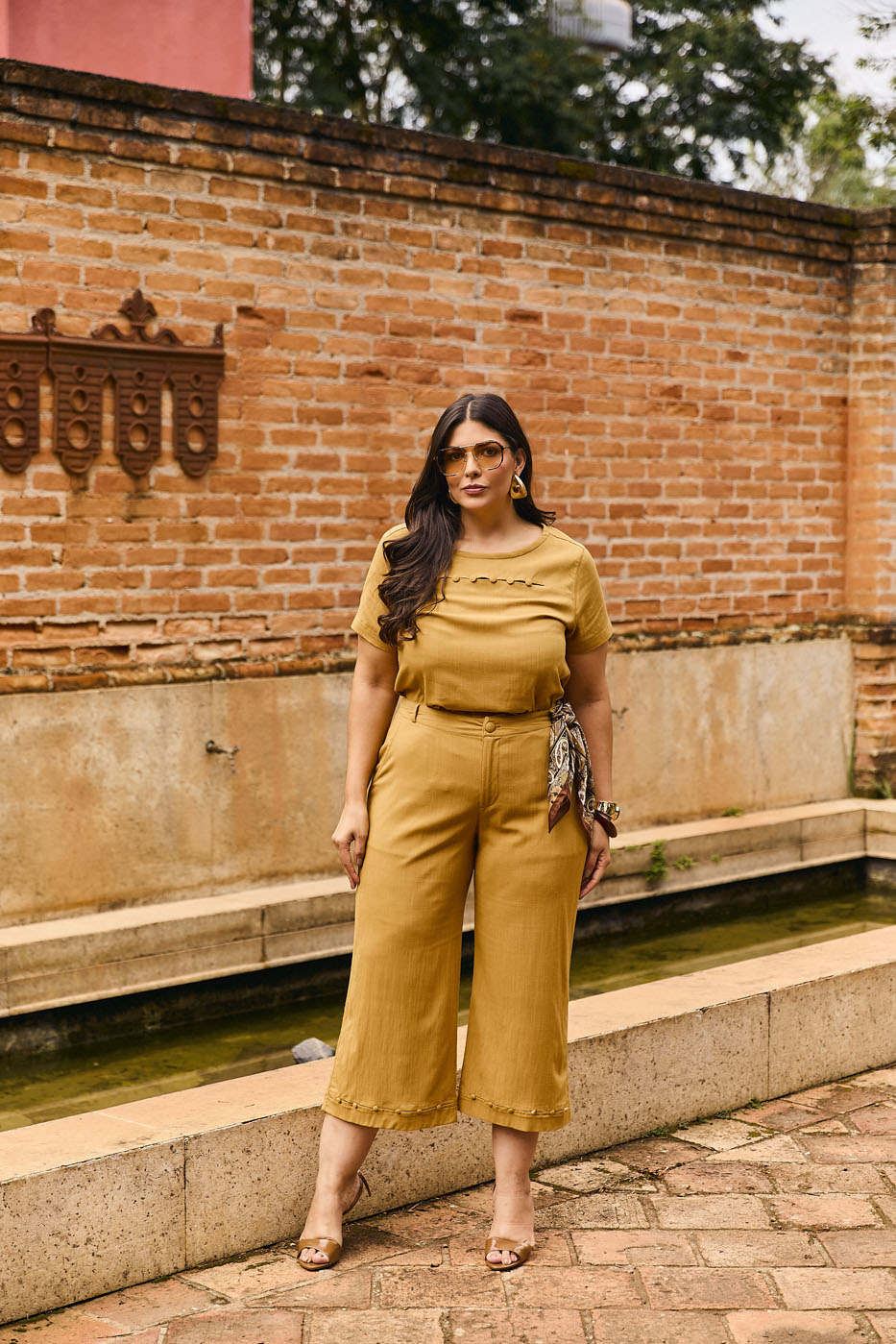 Pantacourt, perna ampla e comprimento na panturrilha